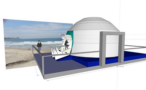 While in San Diego I used the time difference to the UK to build this very rough model to explain to producers & other crew members what the dome & backdrop would be like in its setting.